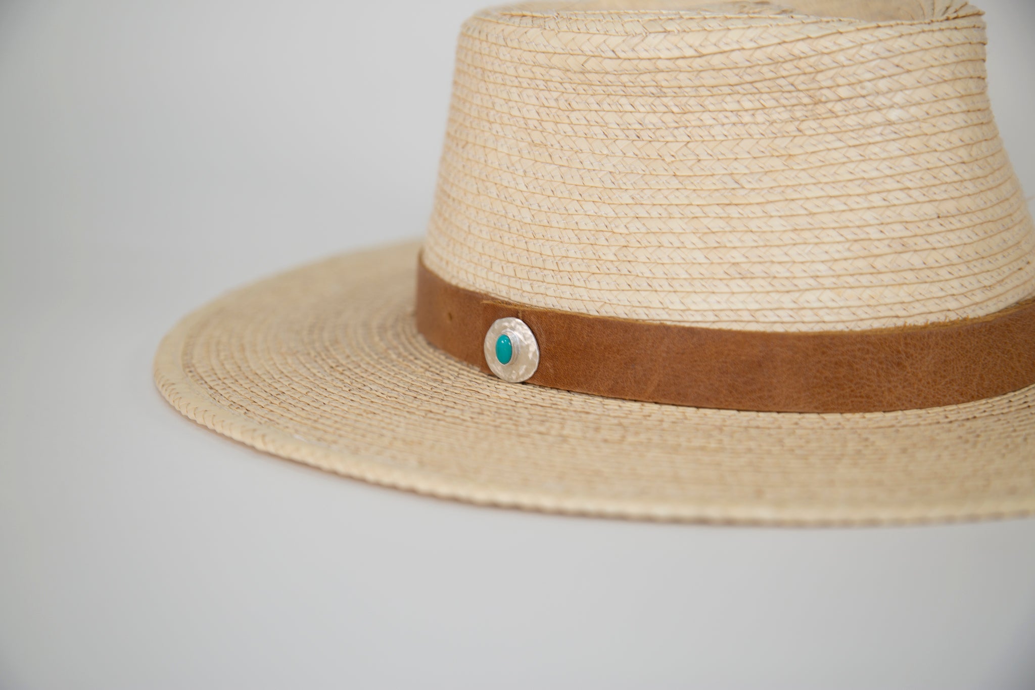 Lonewolf Collective band with sterling silver and turquoise on an adjustable tan piece of elk hide.