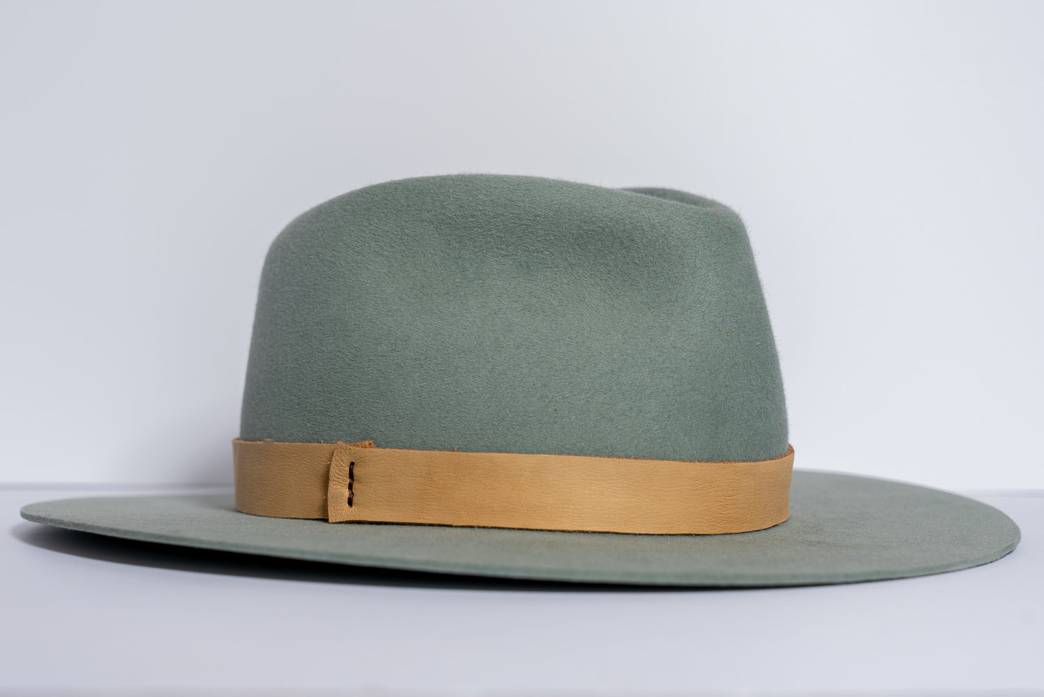 An effortless and simple design based on my beautiful Mom, Svea. Those blue eyes are pretty unforgettable especially when you pair them with a Willow hat like this one. The light deerskin band resembling her blonde hair. This Swedish-inspired hat is to die for!