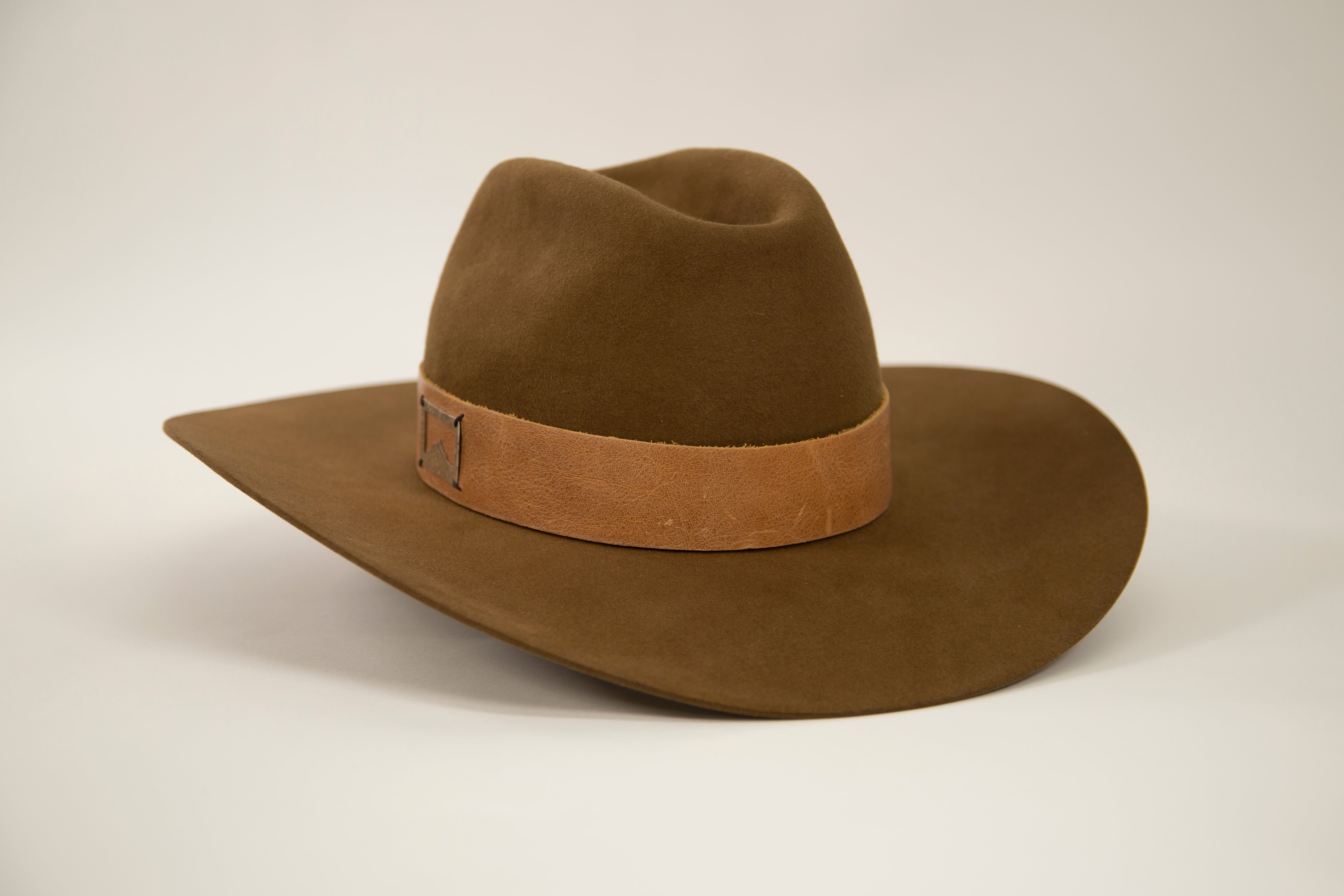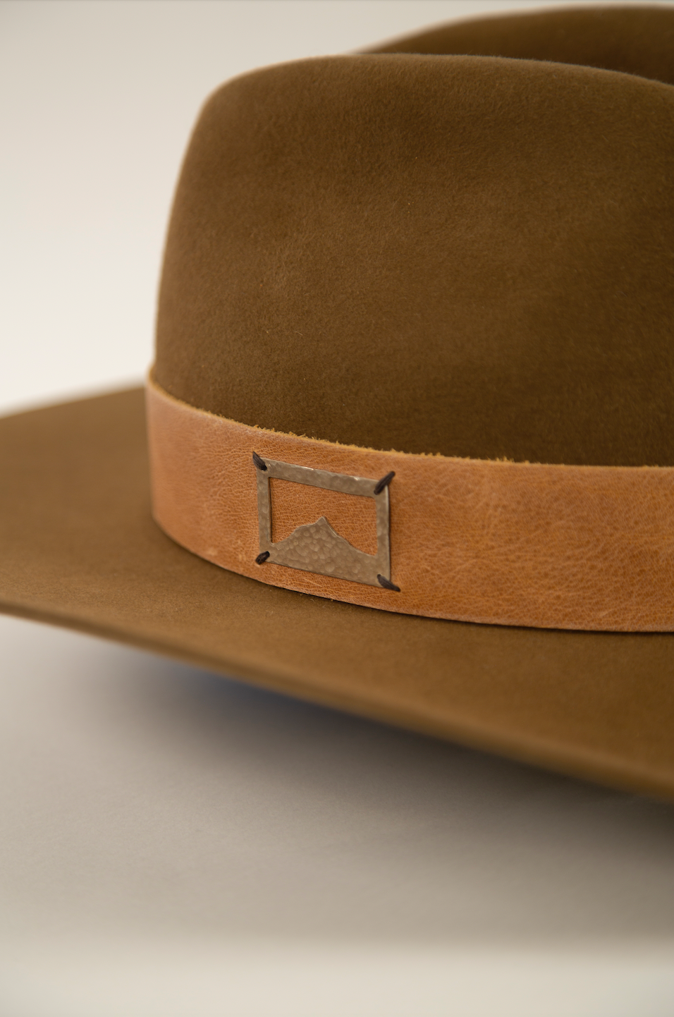 - Hat Band: Tanned leather cowhide band cross stitched together and accented with a sterling silver emblem of Crested Butte Mountain. Designed by Lonewolf Collective.