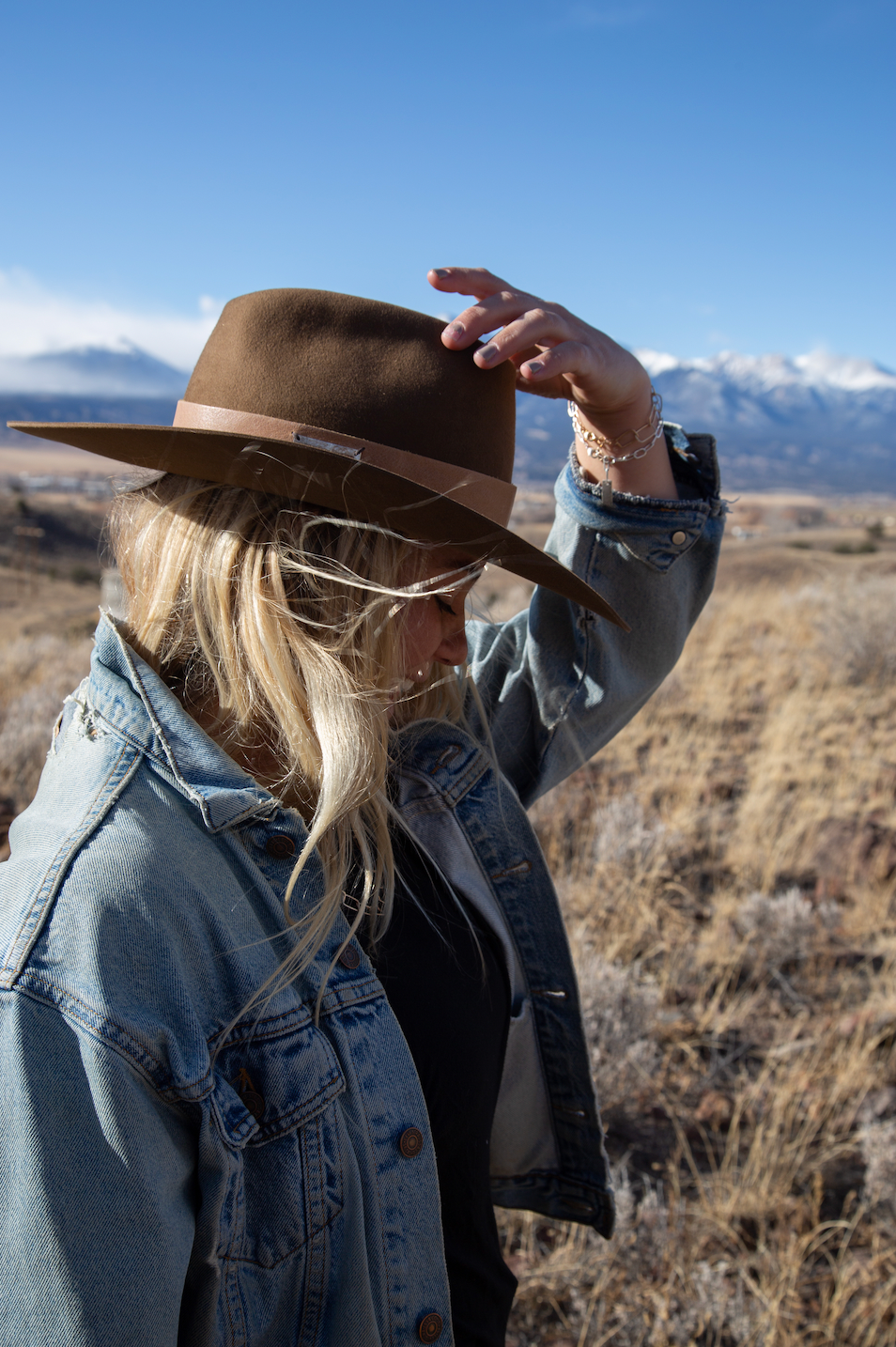Inspired by our very own town of Crested Butte, Colorado- we introduce to you The Mountain Mama. Always looking up to motherly figures in Crested Butte and paying good attention to their style too. The strong, driven women that make up this town call for a workin' gals hat. Protecting you from the sun rays and heat, blocking you from the snow, or staying on your head while herding cattle.